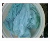 媒染なしで、水浅葱色から青色になりますが、染め重ねると少し黒味の青になりやすいです。